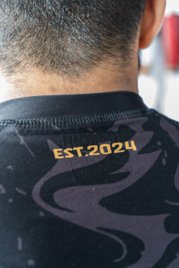 Engineered for performance, the Black Flow Rashguard combines style and function for every round. Built with 4-way stretch fabric for unrestricted movement, heat-sealed branding for a premium finish, and an elastic hem to keep your fit locked in place. Lightweight, durable, and made to move with you — whether on the mats or under the lights.